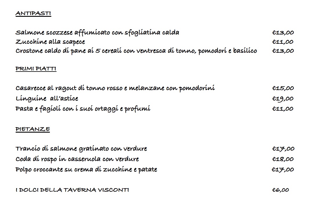 - Leggere il menu, dell' Antica Trattoria o della Trattoria di mare